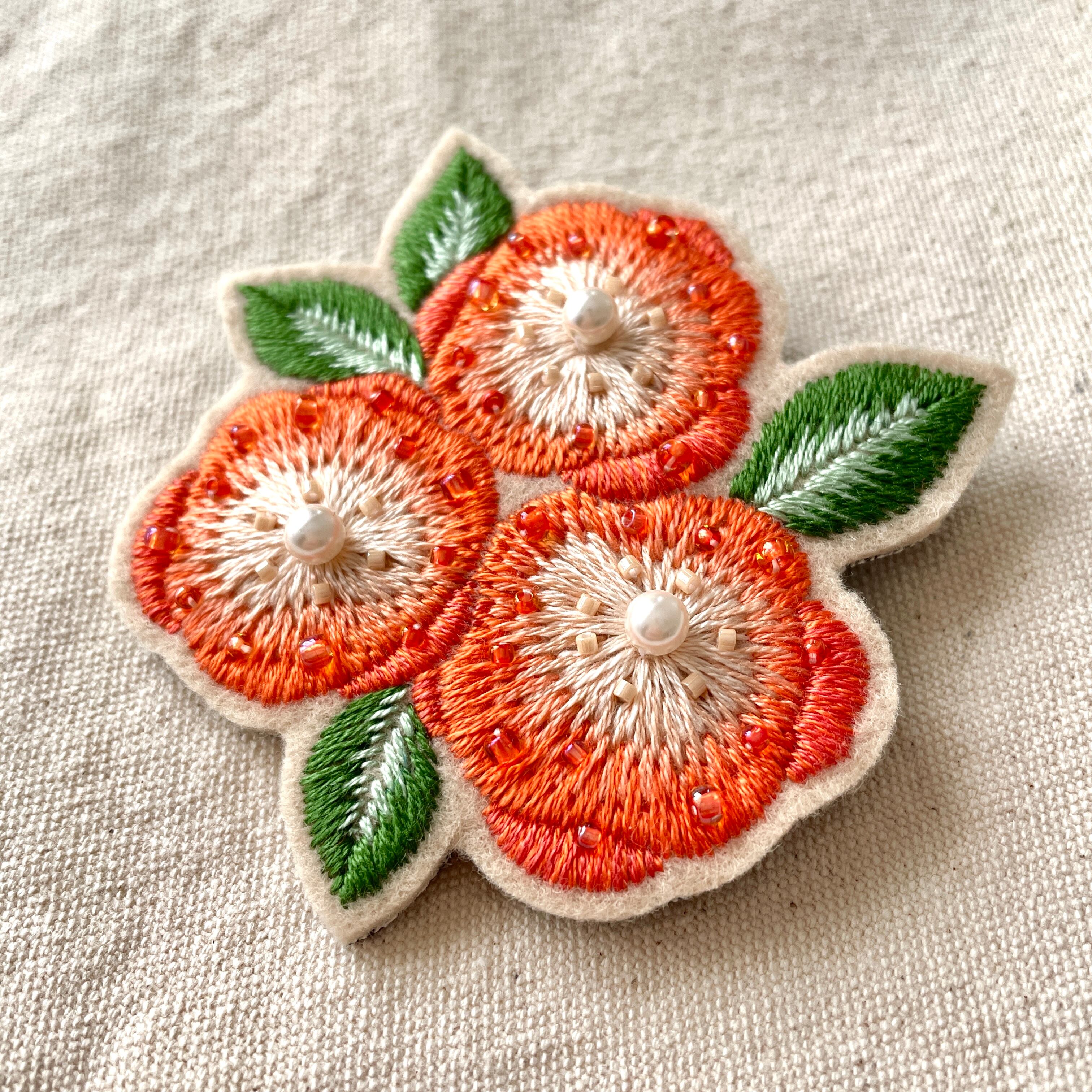 ●素材:ビーズ、刺繍糸、フェルト生地、合皮、ブローチピン