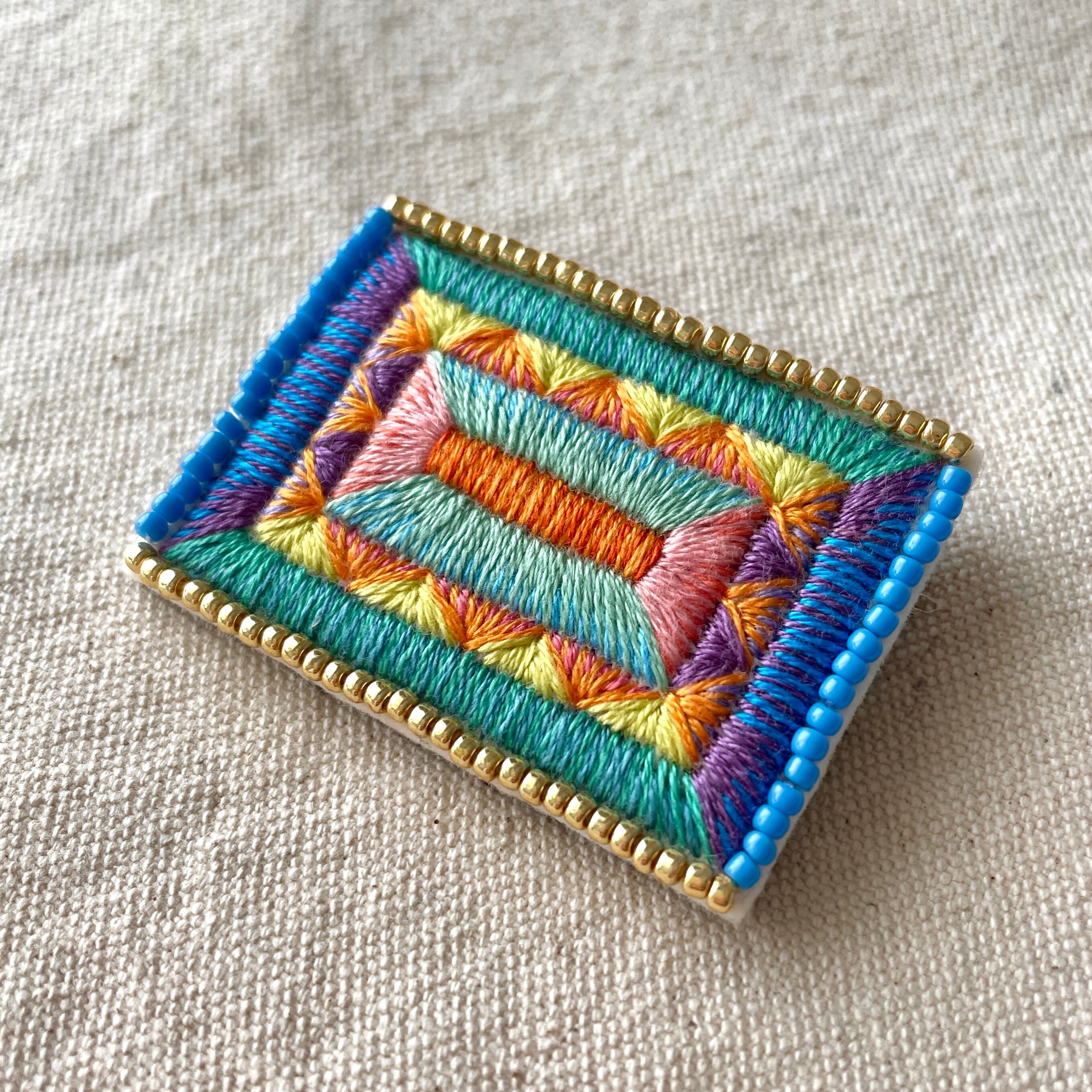 糸で縫い上げた鮮やかで褪せることのない光のブローチ。