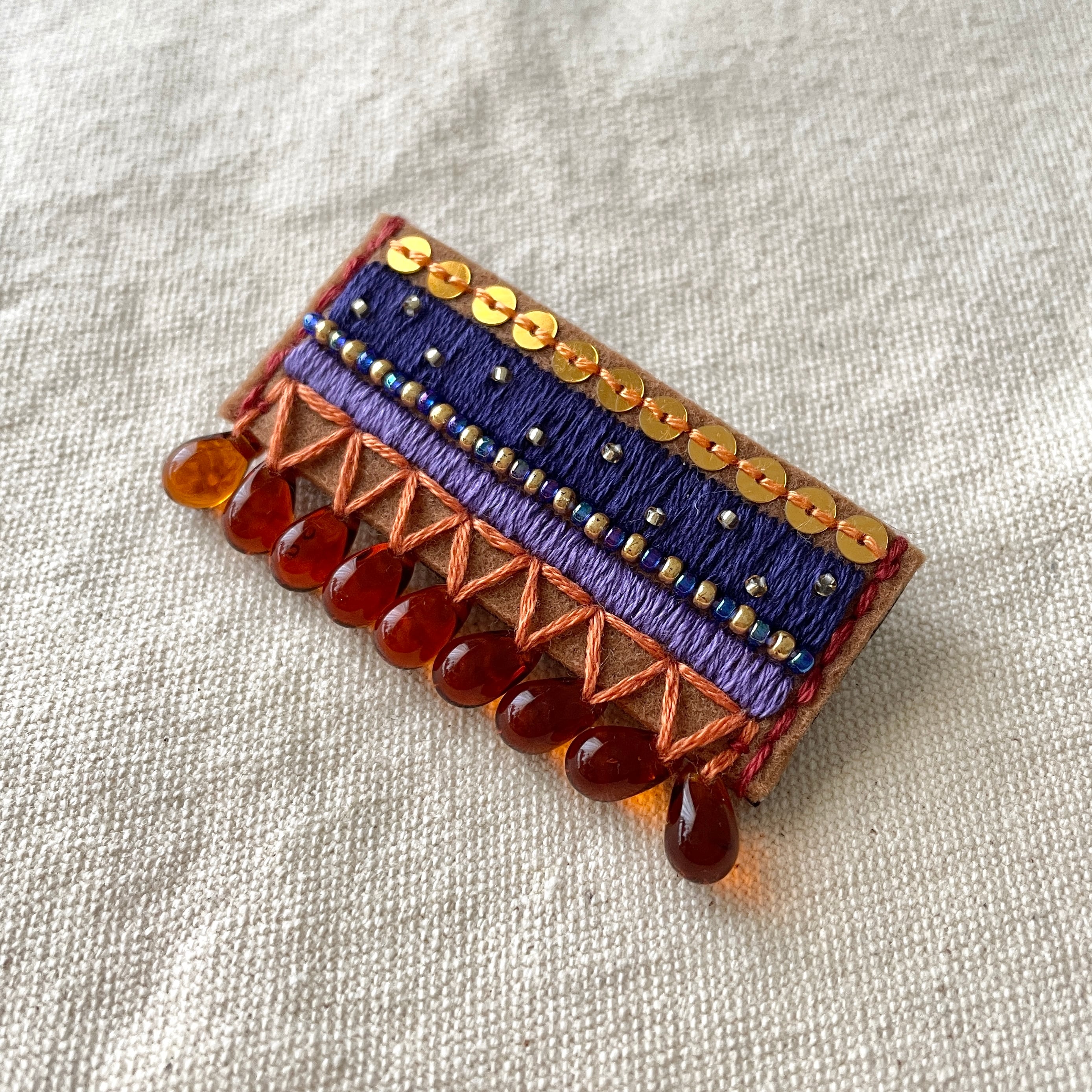 ●素材:ビーズ、刺繍糸、フェルト生地、合皮、ブローチピン