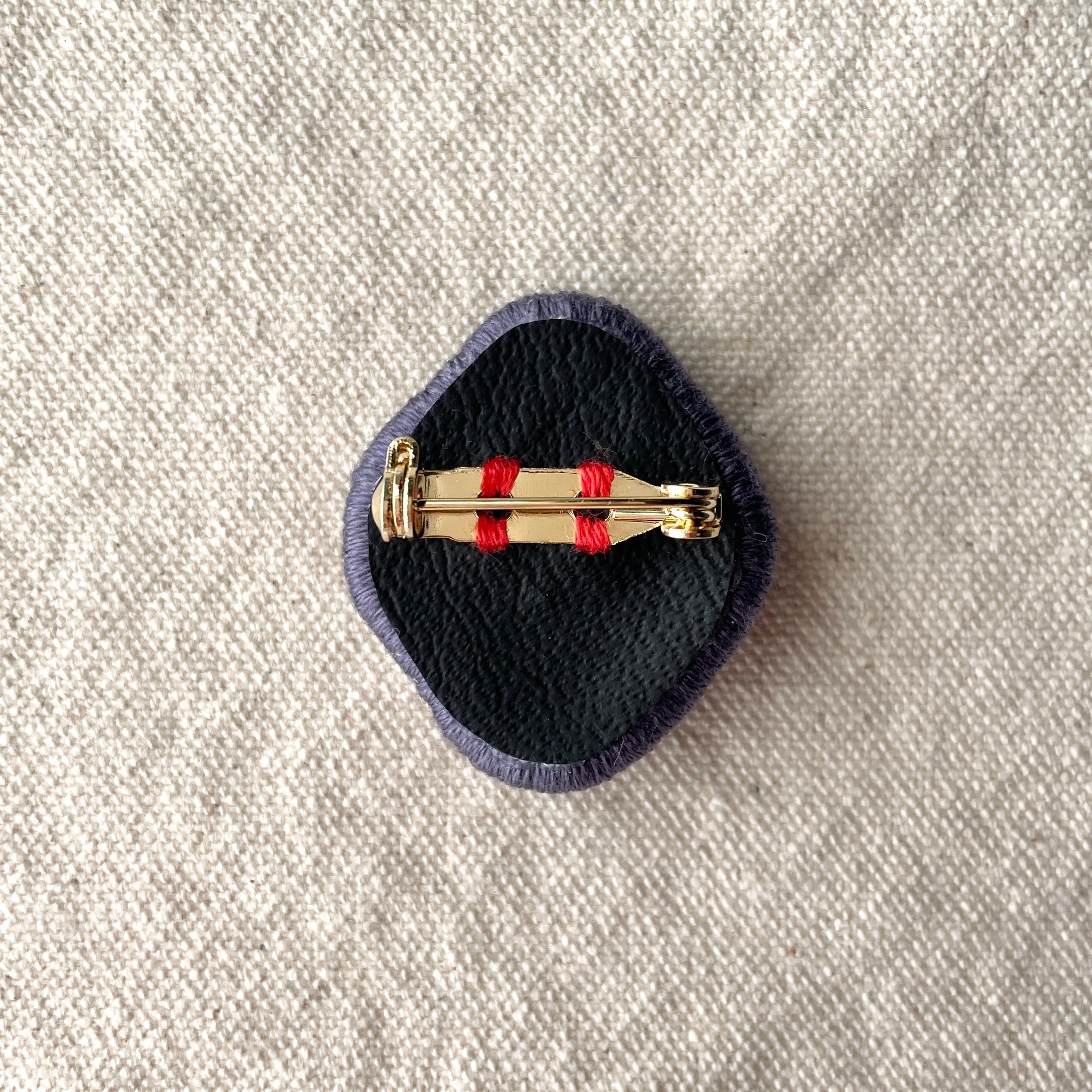 トーンおさえめな紫色の刺繍糸で周囲を厚めに囲ったのもポイントです。