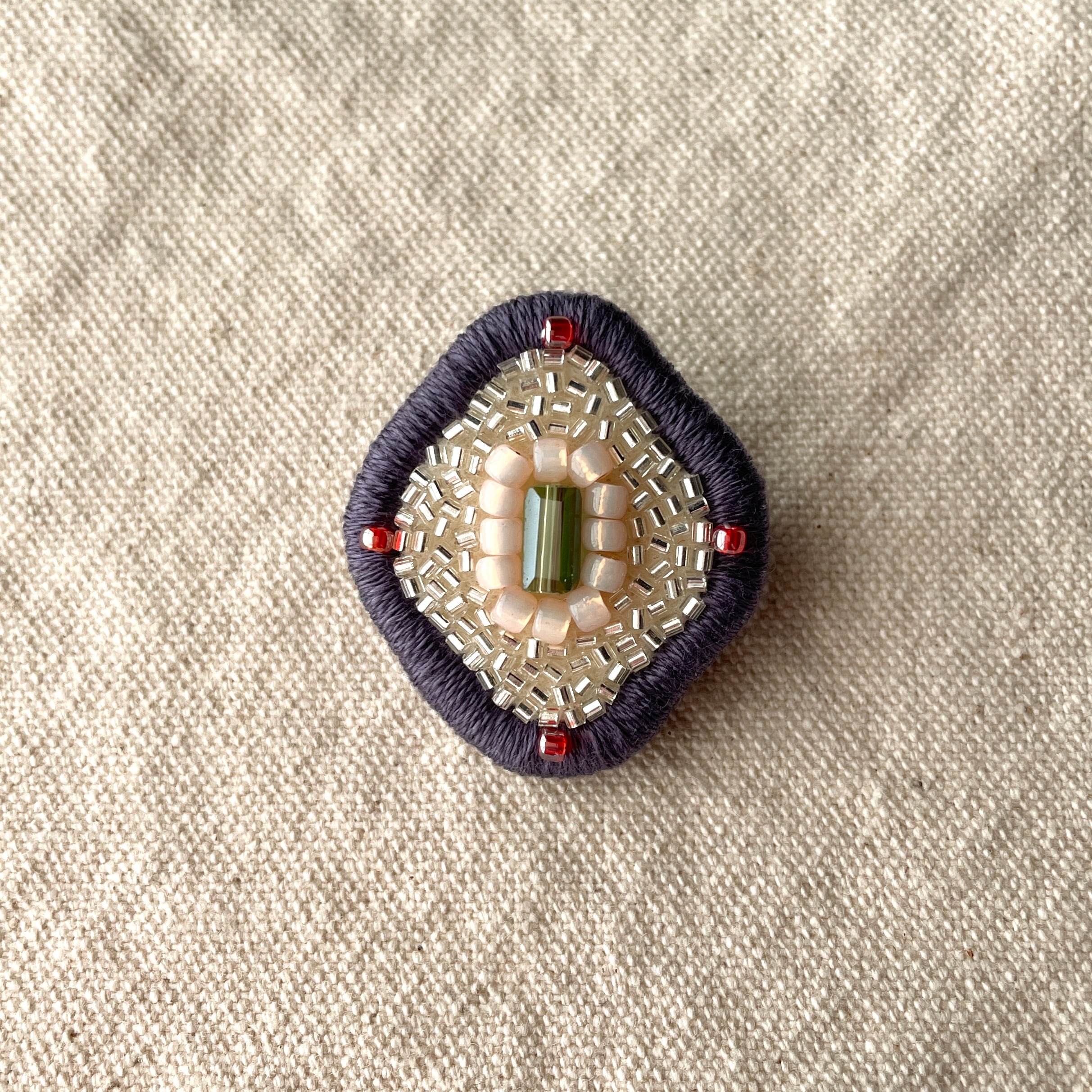 ●素材:ビーズ、刺繍糸、フェルト生地、合皮、ブローチピン