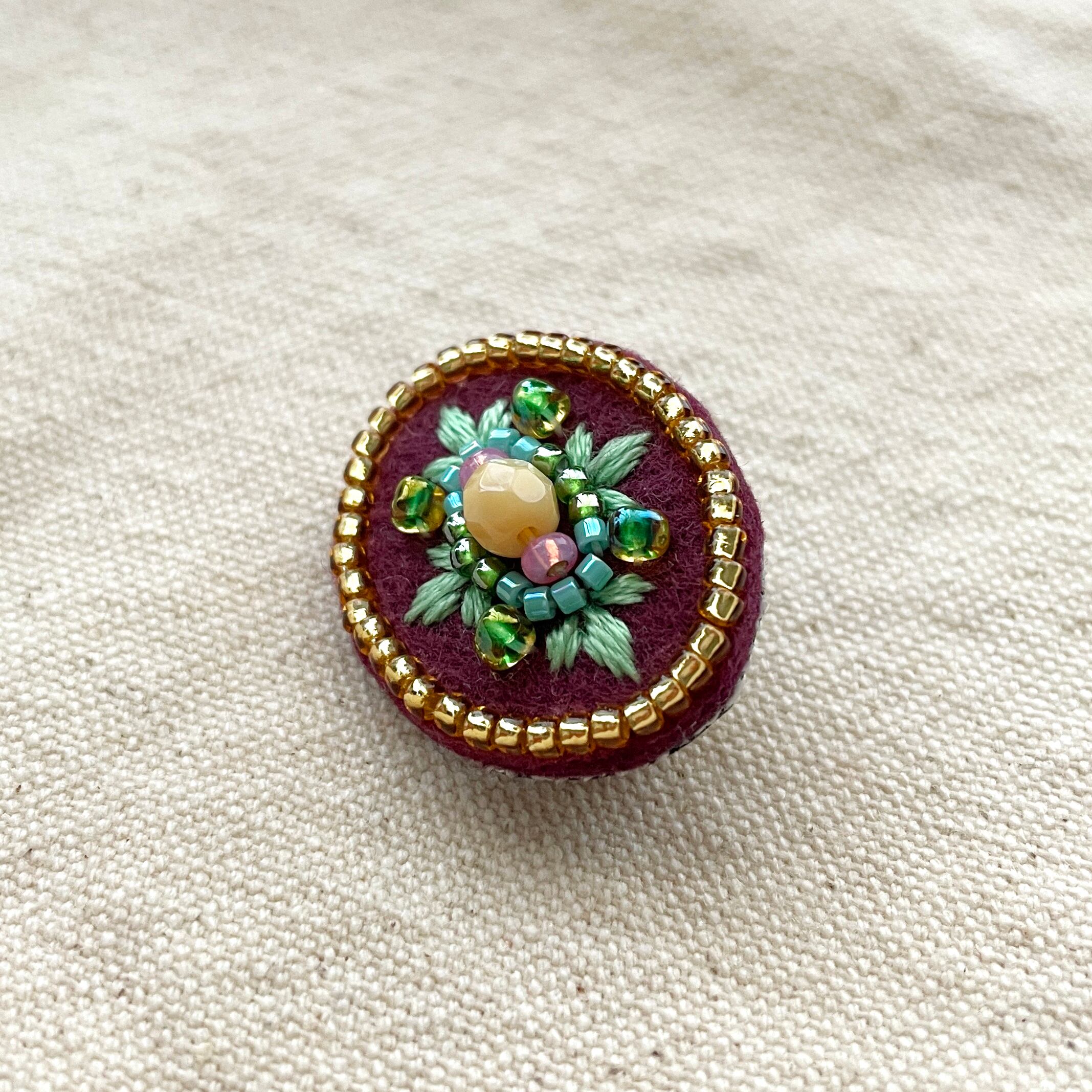 ●素材:ビーズ、刺繍糸、フェルト生地、合皮、ブローチピン