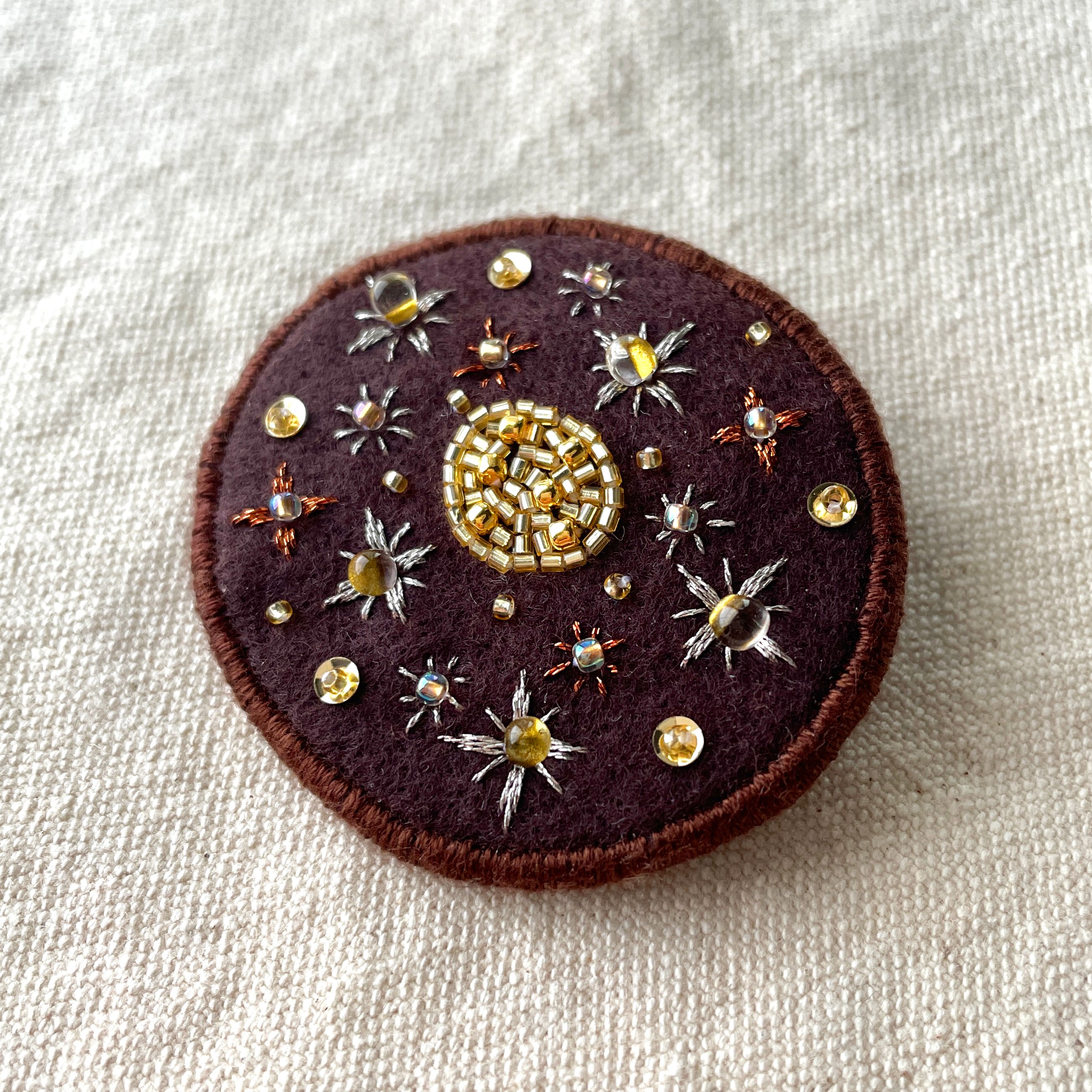 ●素材:ビーズ、刺繍糸、フェルト生地、合皮、ブローチピン