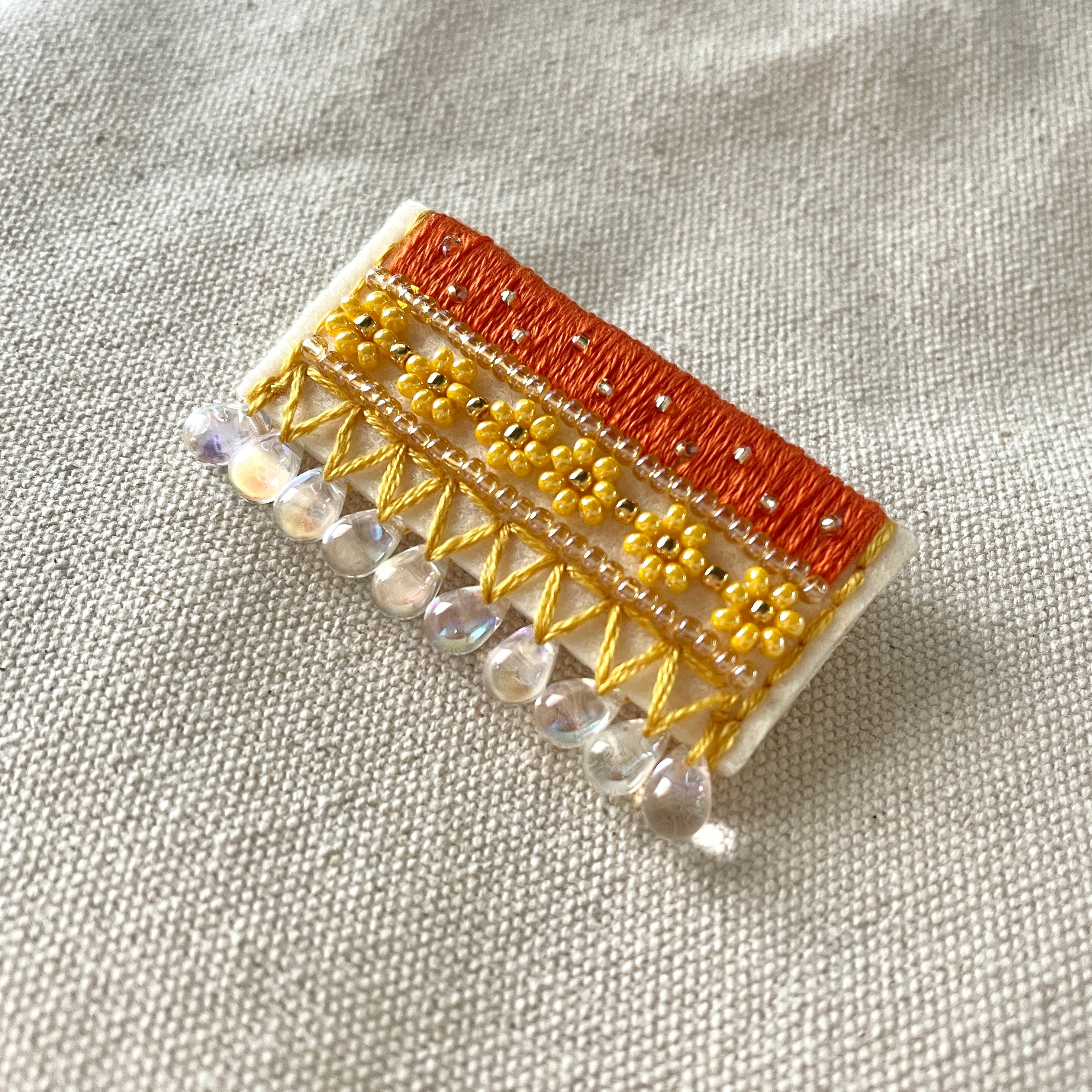 一面の黄色い花畑をイメージして縫ったブローチです。