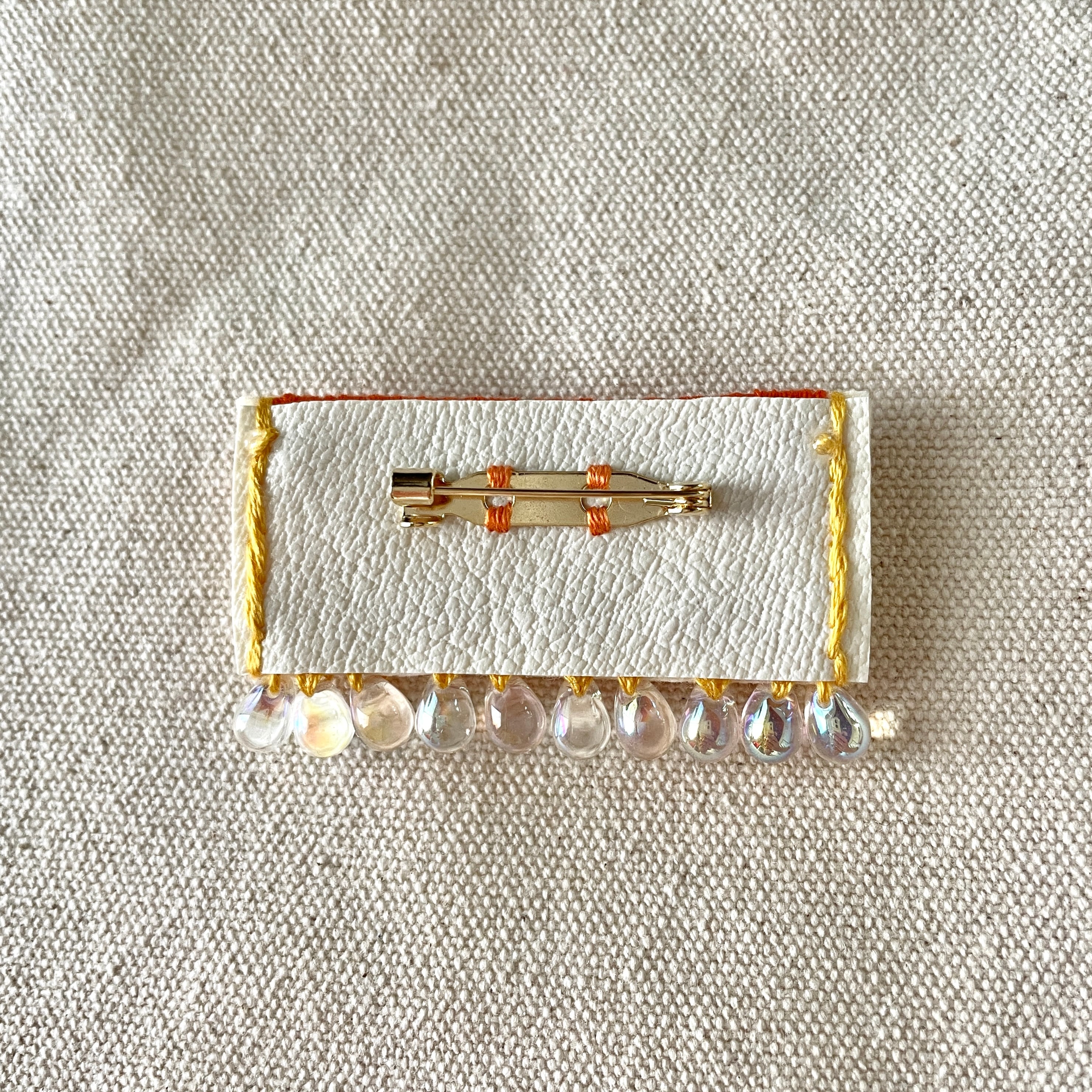 ●素材:ビーズ、刺繍糸、フェルト生地、合皮、ブローチピン