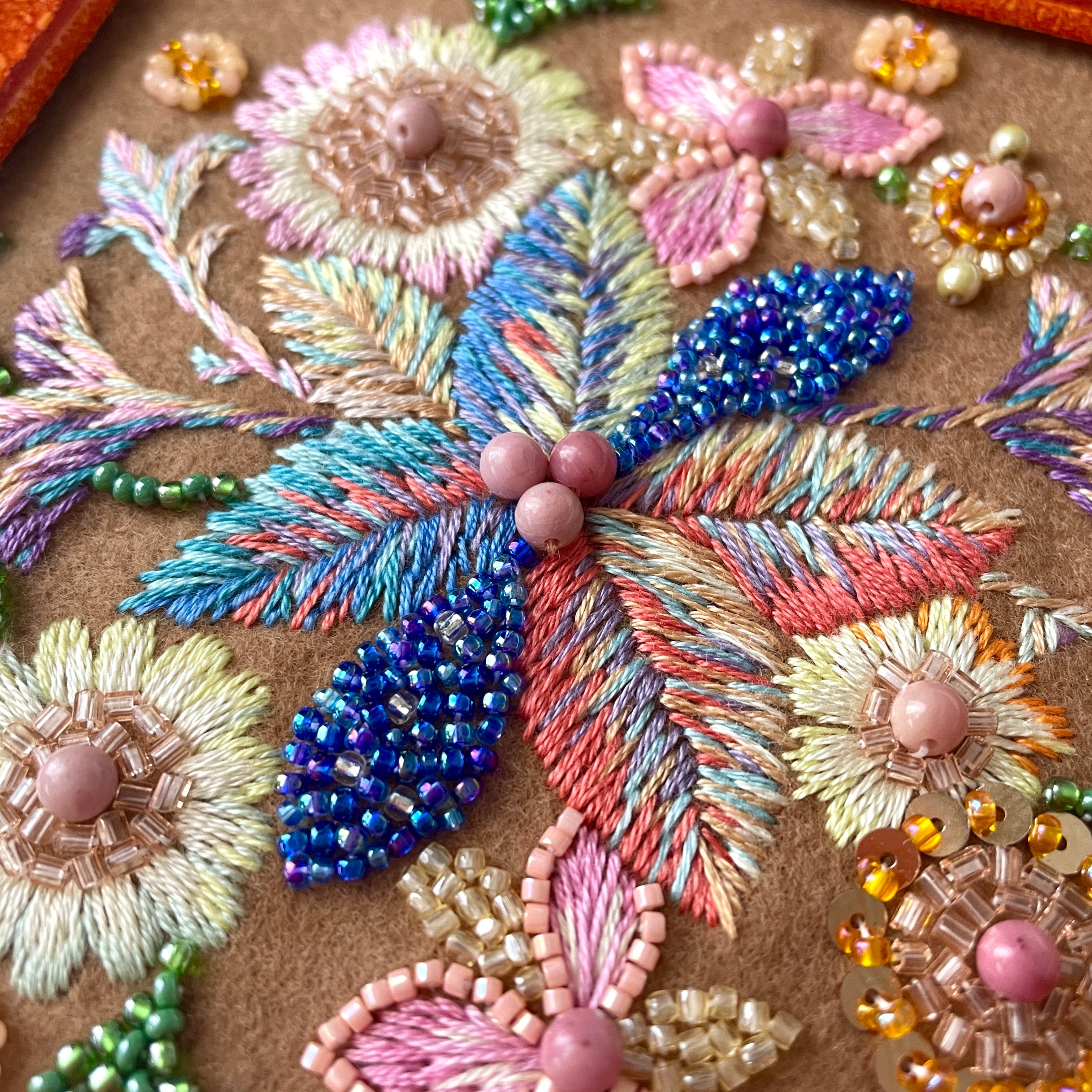 ●素材:天然石(インカローズ)、ビーズ、刺繍糸、フェルト生地