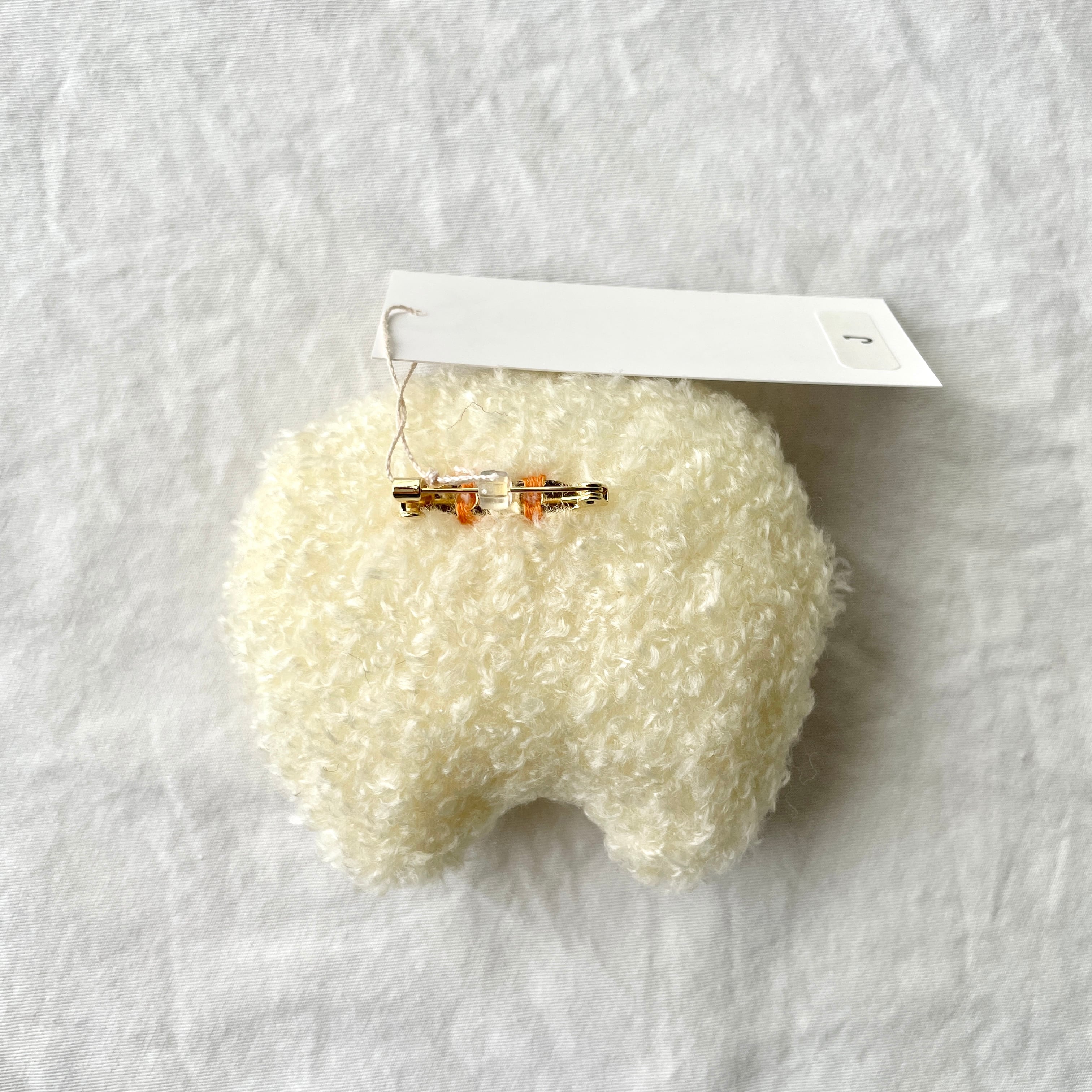 ホワイトもじゃもじゃくんマスコットのブローチタイプ【J】です。